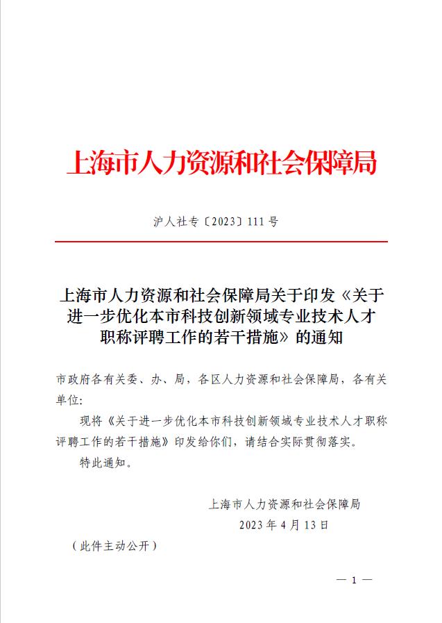 现将《关于进一步优化本市科技创新领域专业技术人才职称评聘工作的若干措施》印发给你们,请结合实际贯彻落实。