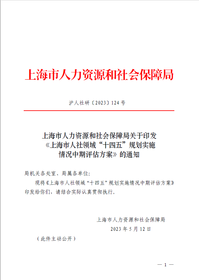 现将《上海市人社领域“十四五”规划实施情况中期评估方案》印发给你们,请结合实际认真贯彻执行。
