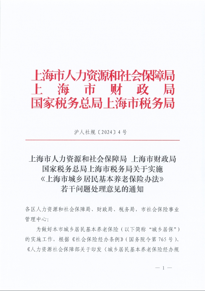 为做好本市城乡居民基本养老保险(以下简称“城乡居保”)的实施工作,根据《社会保险经办条例》(国务院令第765号)、《人力资源社会保障部关于印发〈城乡居民基本养老保险经办规程〉的通知》(人社部发〔2019〕84号)以及《上海市人民政府关于印发修订后的〈上海市城乡居民基本养老保险办法〉的通知》(沪府规〔2023〕18号,以下简称《办法》)规定,现就有关问题提出以下处理意见: