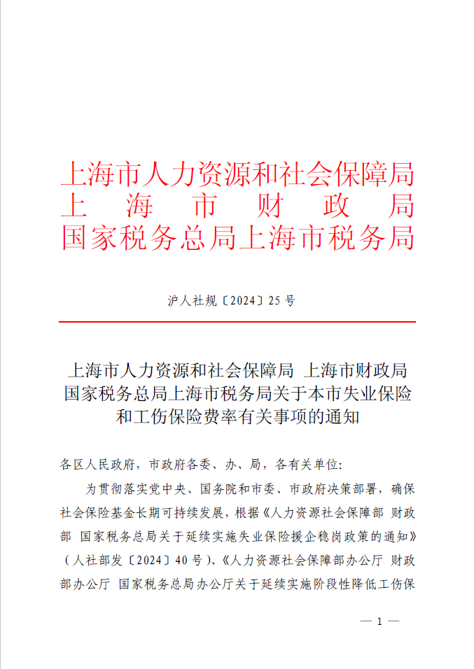 为贯彻落实党中央、国务院和市委、市政府决策部署,确保社会保险基金长期可持续发展,根据《人力资源社会保障部 财政部 国家税务总局关于延续实施失业保险援企稳岗政策的通知》(人社部发〔2024〕40号)、《人力资源社会保障部办公厅 财政部办公厅 国家税务总局办公厅关于延续实施阶段性降低工伤保险费率工作的通知》(人社厅函〔2024〕35号)要求,经市政府同意,自2025年1月1日起,调整本市失业保险和工伤保险费率。现就有关事项通知如下: