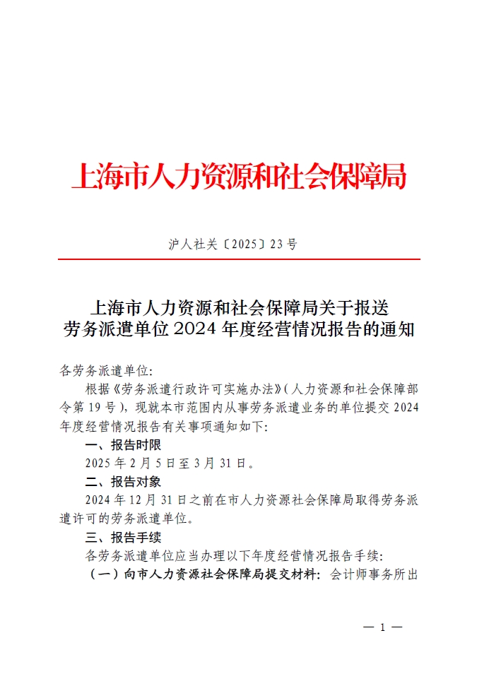 根据《劳务派遣行政许可实施办法》(人力资源和社会保障部令第19号),现就本市范围内从事劳务派遣业务的单位提交2024年度经营情况报告有关事项通知如下: