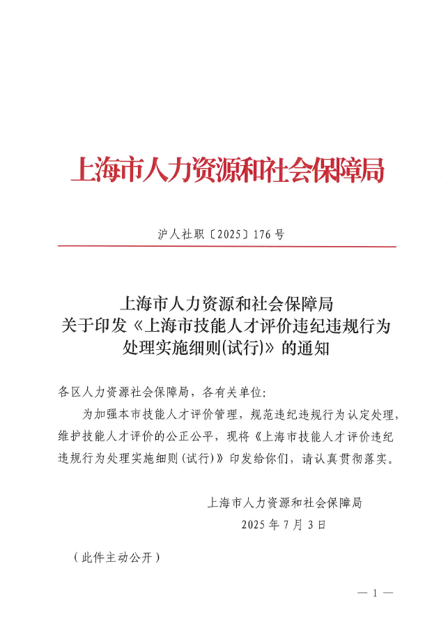 为加强本市技能人才评价管理,规范违纪违规行为认定处理,维护技能人才评价的公正公平,现将《上海市技能人才评价违纪违规行为处理实施细则(试行)》印发给你们,请认真贯彻落实。