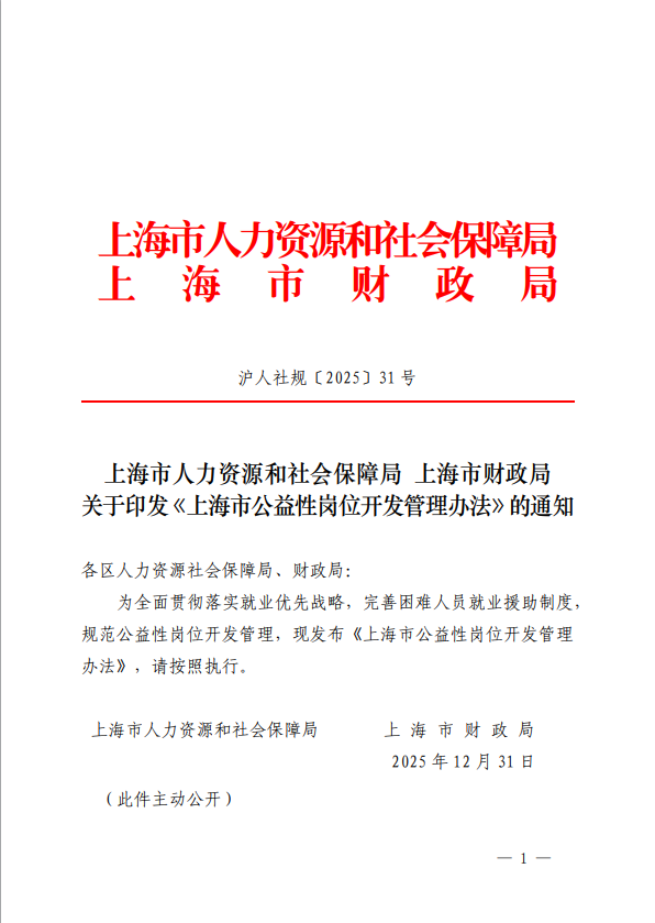 为全面贯彻落实就业优先战略,完善困难人员就业援助制度,规范公益性岗位开发管理,现发布《上海市公益性岗位开发管理办法》,请按照执行。