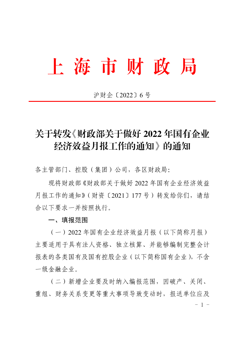 现将财政部《财政部关于做好2022年国有企业经济效益月报工作的通知》(财资〔2021〕177号)转发给你们,请结合以下要求一并按照执行。