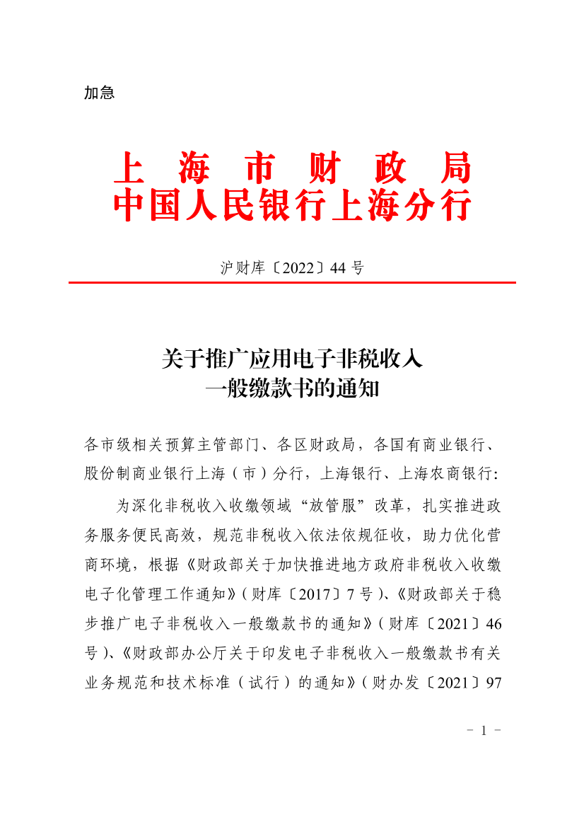 为深化非税收入收缴领域“放管服”改革,扎实推进政务服务便民高效,规范非税收入依法依规征收,助力优化营商环境,根据《财政部关于加快推进地方政府非税收入收缴电子化管理工作通知》(财库〔2017〕7号)、《财政部关于稳步推广电子非税收入一般缴款书的通知》(财库〔2021〕46号)、《财政部办公厅关于印发电子非税收入一般缴款书有关业务规范和技术标准(试行)的通知》(财办发〔2021〕97号)等文件要求,结合本市实施非税收入收缴电子化管理情况,现将推广应用电子非税收入一般缴款书(以下简称电子缴款书)有关事宜通知如下: