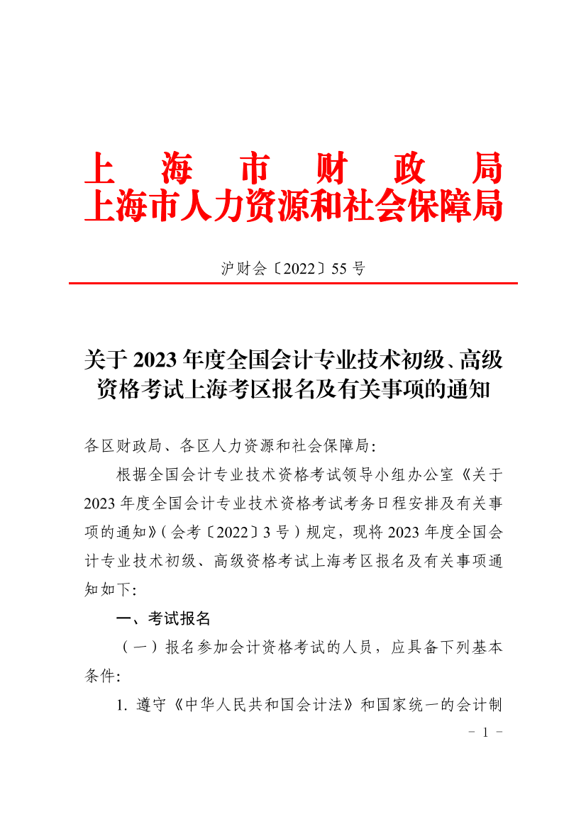 根据全国会计专业技术资格考试领导小组办公室《关于2023年度全国会计专业技术资格考试考务日程安排及有关事项的通知》(会考〔2022〕3号)规定,现将2023年度全国会计专业技术初级、高级资格考试上海考区报名及有关事项通知如下: