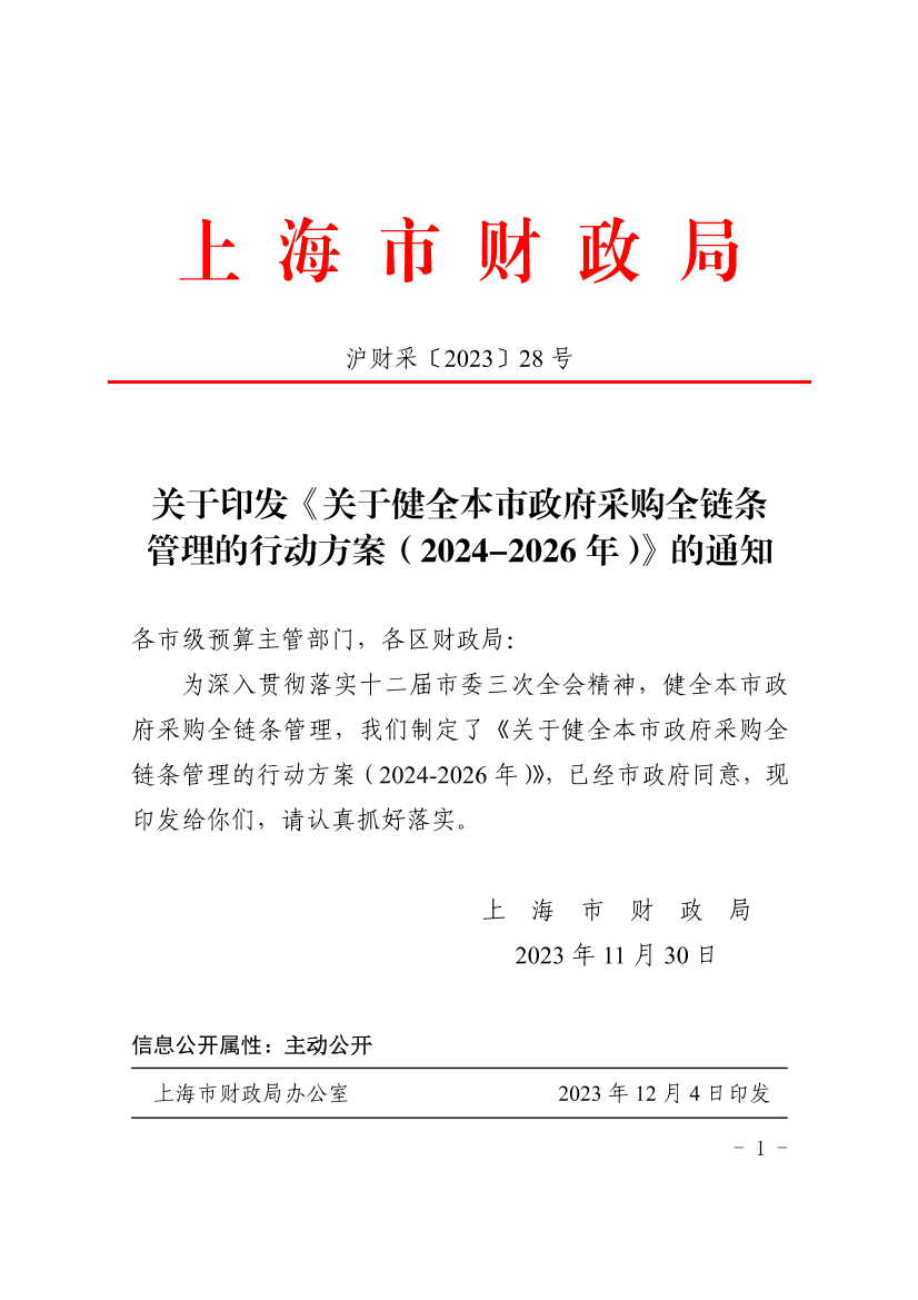 印发日期:2023-11-30      发布日期:2023-12-05      沪财采〔2023〕28 号
