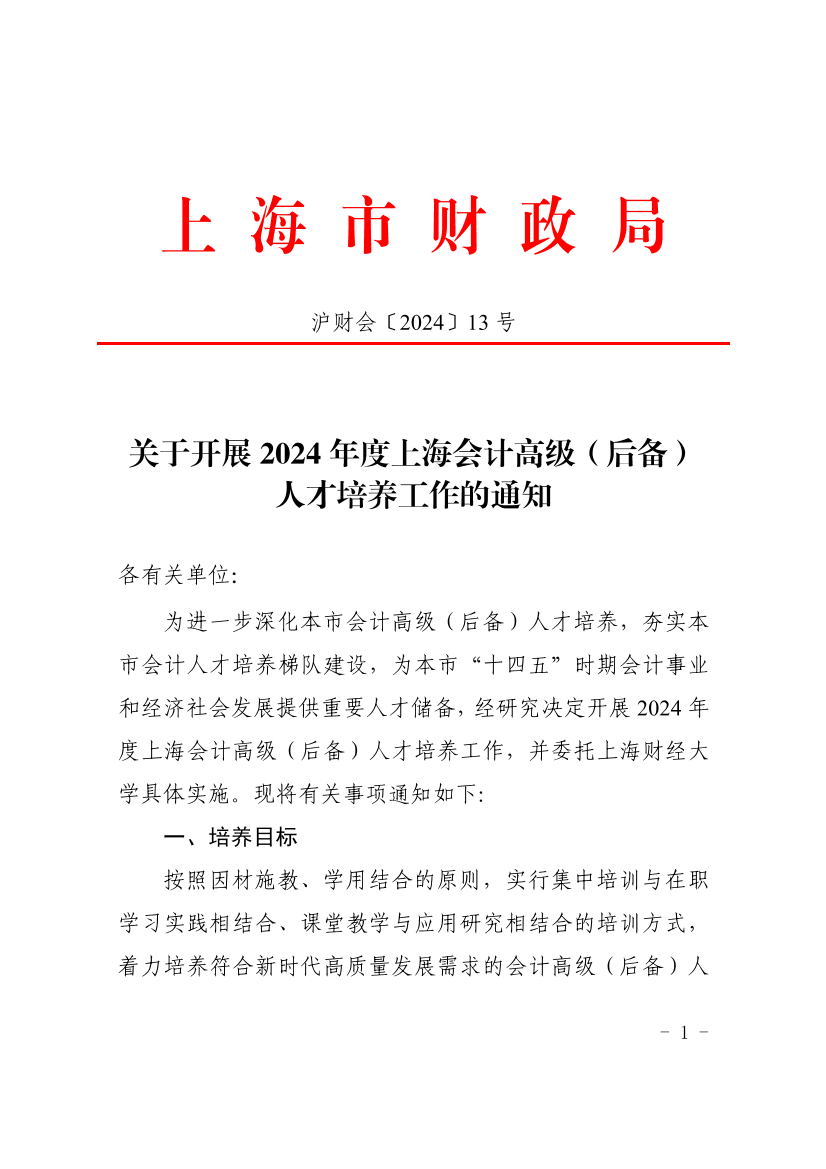 为进一步深化本市会计高级(后备)人才培养,夯实本市会计人才培养梯队建设,为本市“十四五”时期会计事业和经济社会发展提供重要人才储备,经研究决定开展2024年度上海会计高级(后备)人才培养工作,并委托上海财经大学具体实施。现将有关事项通知如下: