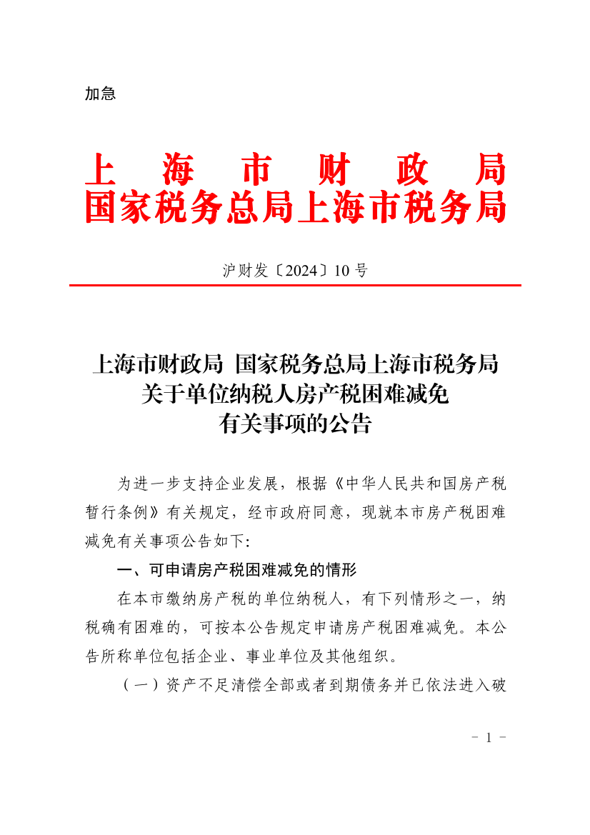 为进一步支持企业发展,根据《中华人民共和国房产税暂行条例》有关规定,经市政府同意,现就本市房产税困难减免有关事项公告如下: