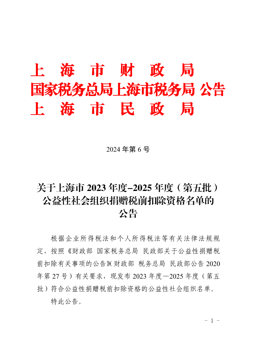 根据企业所得税法和个人所得税法等有关法律法规规定,按照《财政部 国家税务总局 民政部关于公益性捐赠税前扣除有关事项的公告》(财政部 税务总局 民政部公告2020年第27号)有关要求,现发布2023年度—2025年度(第五批)符合公益性捐赠税前扣除资格的公益性社会组织名单。