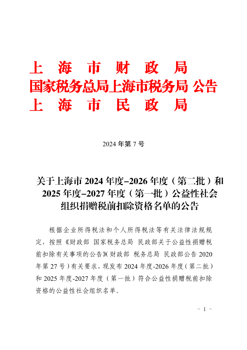 根据企业所得税法和个人所得税法等有关法律法规规定,按照《财政部 国家税务总局 民政部关于公益性捐赠税前扣除有关事项的公告》(财政部 税务总局 民政部公告2020年第27号)有关要求,现发布2024年度-2026年度(第二批)和2025年度-2027年度(第一批)符合公益性捐赠税前扣除资格的公益性社会组织名单。