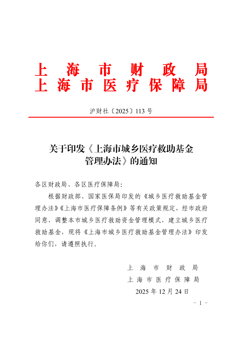 根据财政部、国家医保局印发的《城乡医疗救助基金管理办法》《上海市医疗保障条例》等有关政策规定,经市政府同意,调整本市城乡医疗救助资金管理模式,建立城乡医疗救助基金,现将《上海市城乡医疗救助基金管理办法》印发给你们,请遵照执行。
