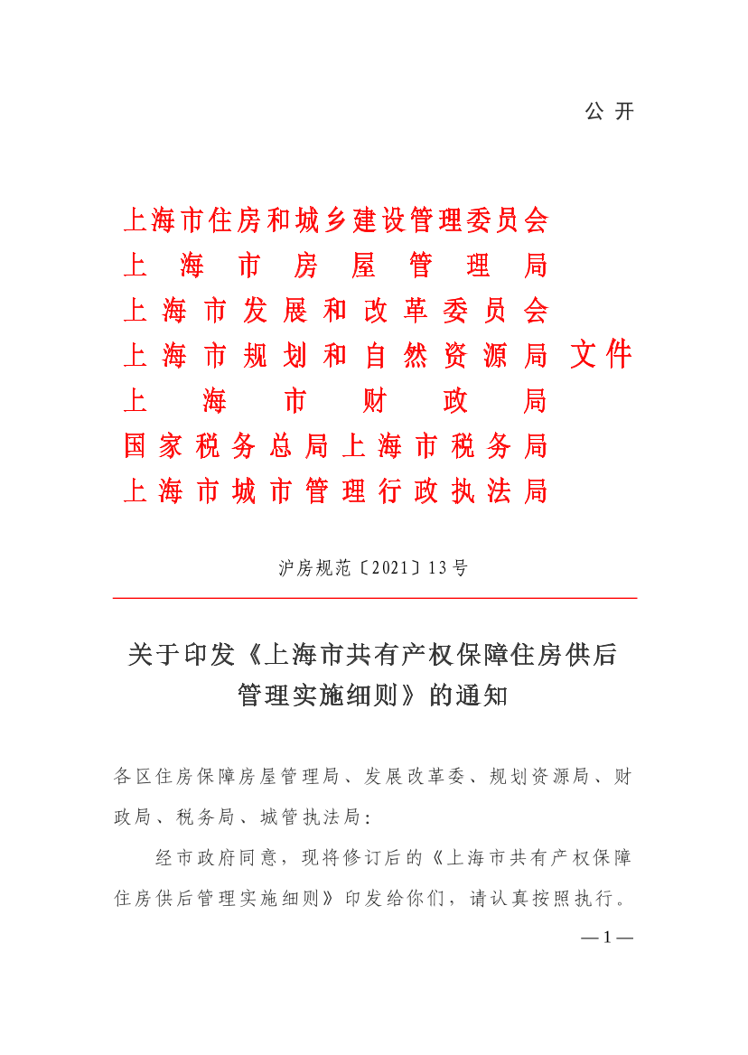 关于印发《上海市共有产权保障住房供后管理实施细则》的通知