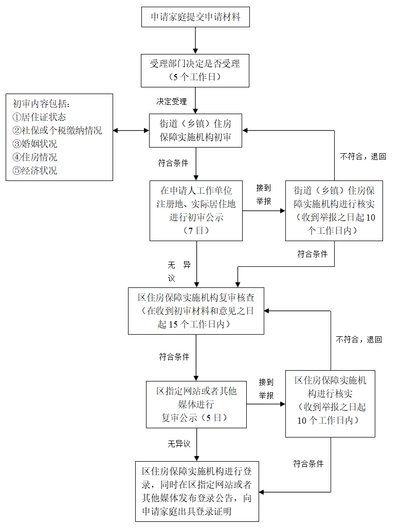 2、轮候供应:申请家庭数量较多时,通过轮候供应方式操作。由非本市户籍家庭申请地的街道(乡镇)和区住房保障机构分别负责初审和复审,区住房保障机构定期组织申请家庭摇号排序和供房选房。