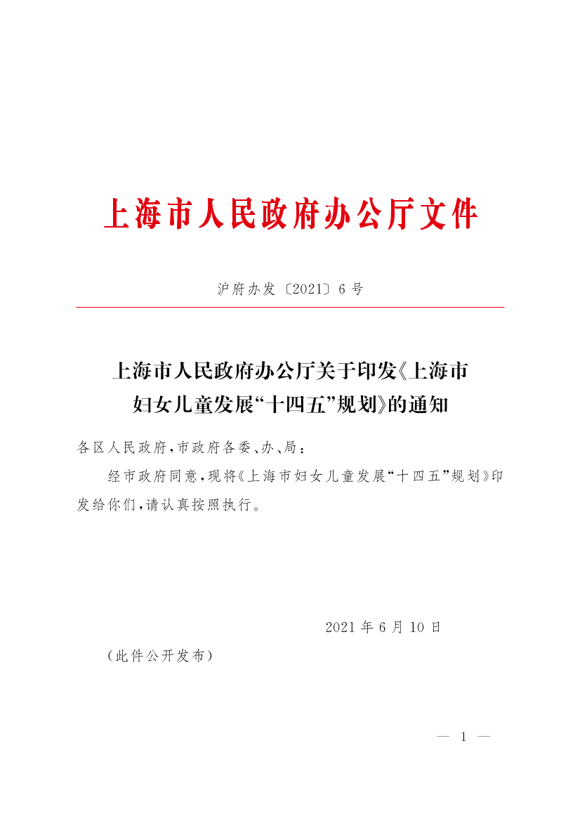 上海市人民政府办公厅关于印发《上海市妇女儿童发展“十四五”规划》的通知