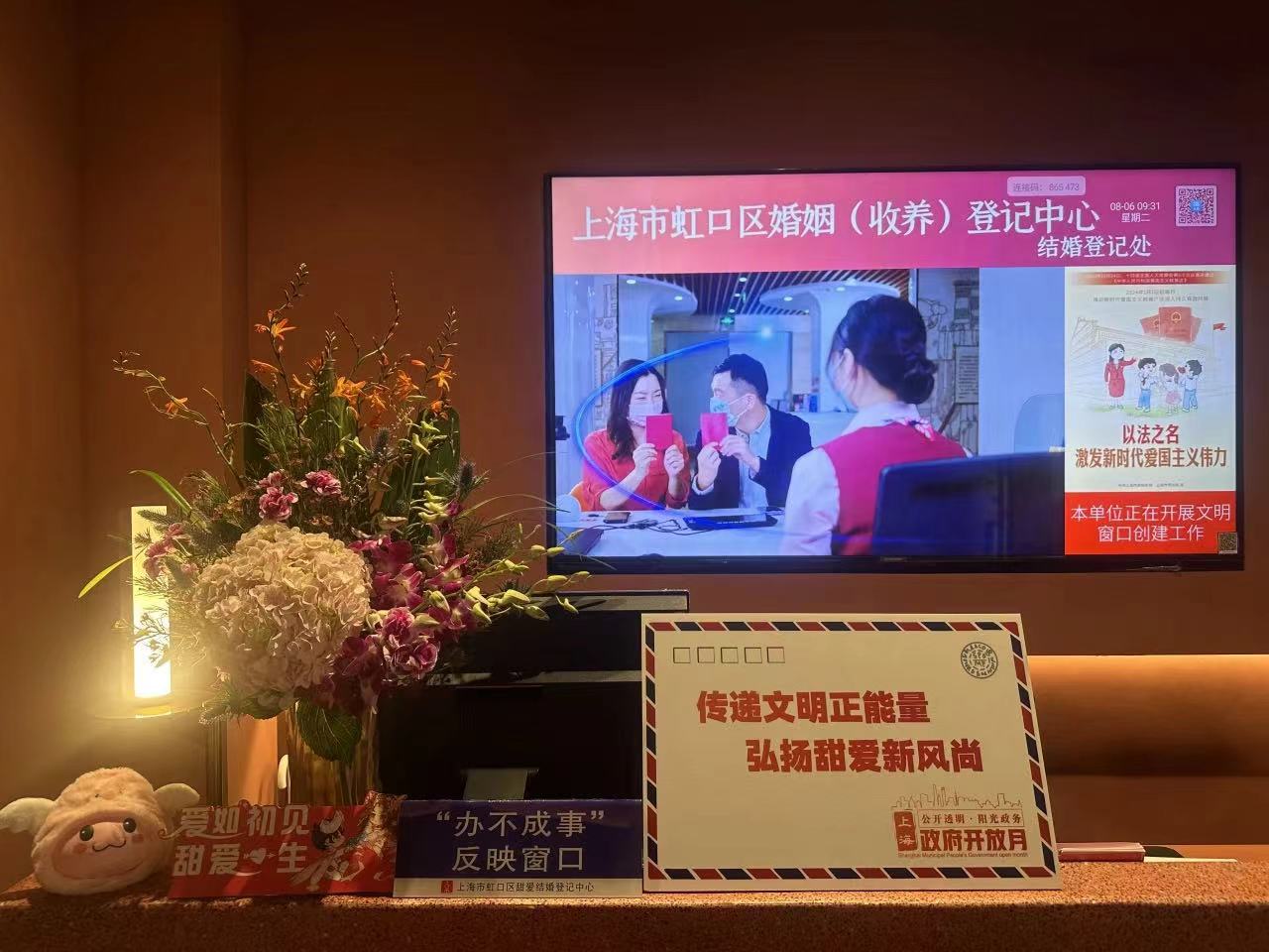 为传递现代文明婚姻家庭正能量,宣传健康婚恋观及家庭观,增进市民对全区目前唯一一家“只办理结婚登记”的特殊婚姻登记办事大厅的了解,近日,虹口区甜爱婚姻登记中心举办“传递文明正能量,弘扬甜爱新风尚”政府开放日活动。