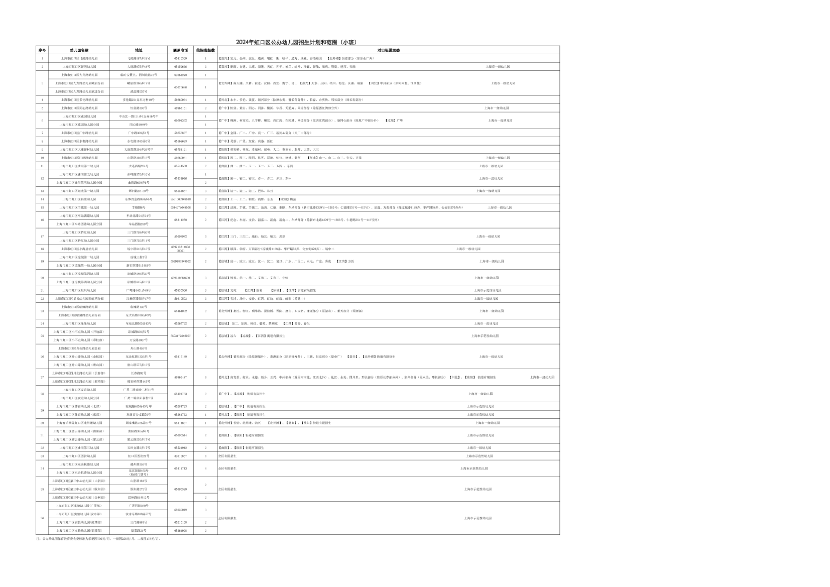 | 2024年虹口区公办幼儿园招生计划和范围(小班) | |||||