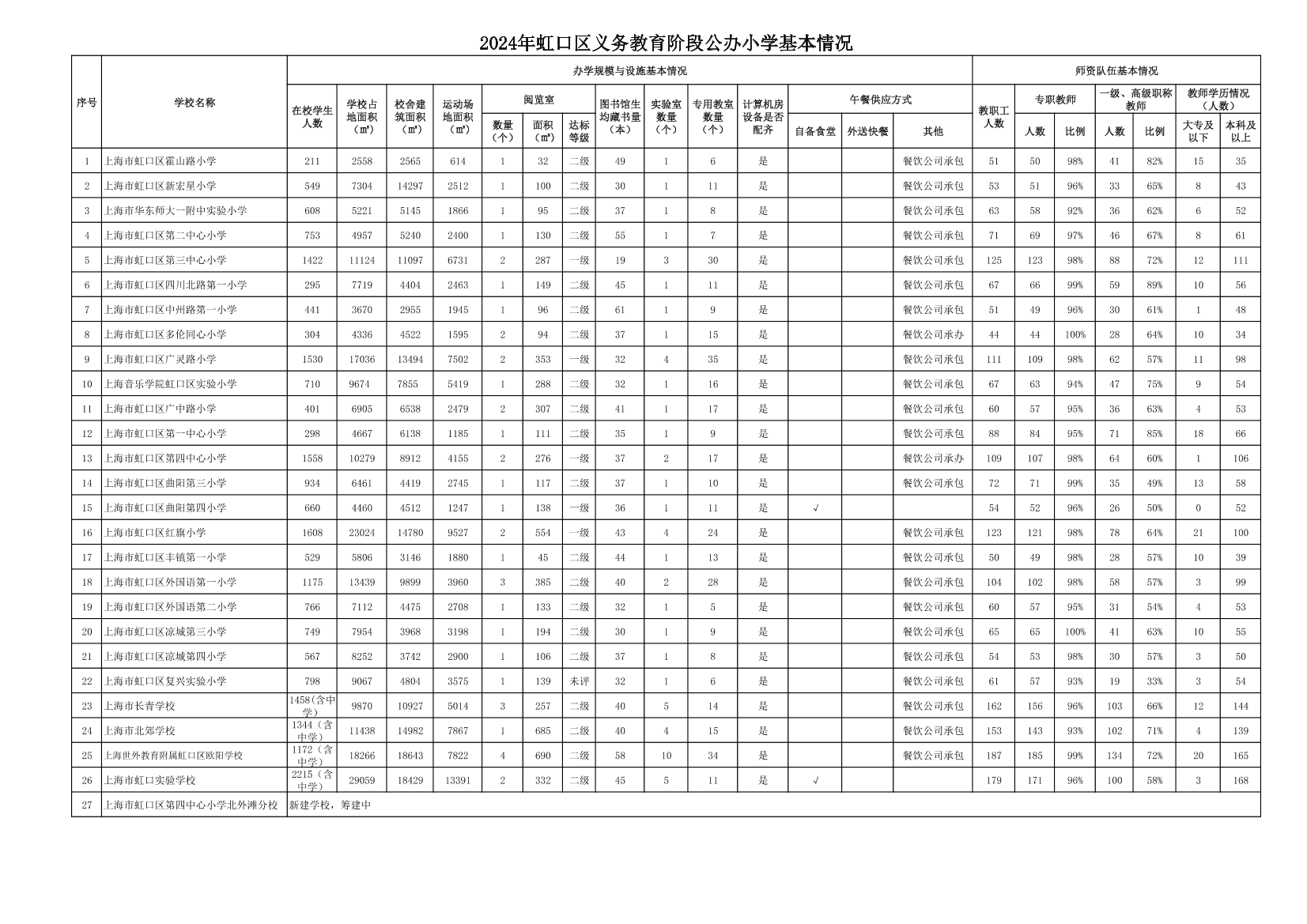 | 2024年虹口区义务教育阶段公办小学基本情况 | ||||||||||||||||||||||