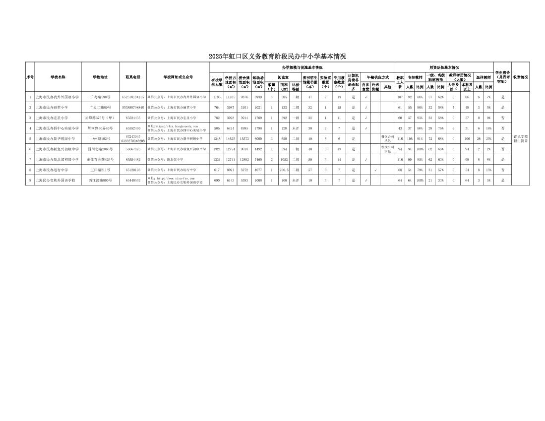 2025年虹口区义务教育阶段民办中小学基本情况