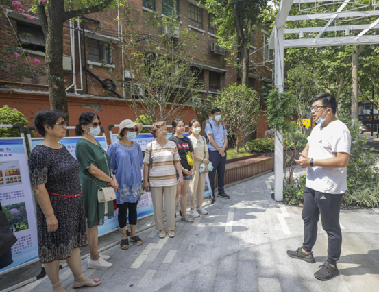 首先,市民代表们在“寻芳园”听取了南昌路“美丽街区”建设的相关成果介绍,尤其是三处口袋花园“阅读园”“寻芳园”“薇花园”的设计理念及其功能,并科普了绿化知识。
