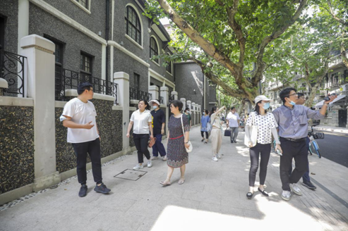 随后,带领市民代表们通过边走边聊的形式,全要素介绍了这几年南昌路“美丽街区”建设的成果,包括了沿线建筑立面的修缮、围墙的美化、合杆的整治、道路的铺装、绿化景观的提升、树穴盖板的匠心设计、沿街业态的转型等等,展示了一条极具风情、切实能够让老百姓驻足观赏的人文街区。