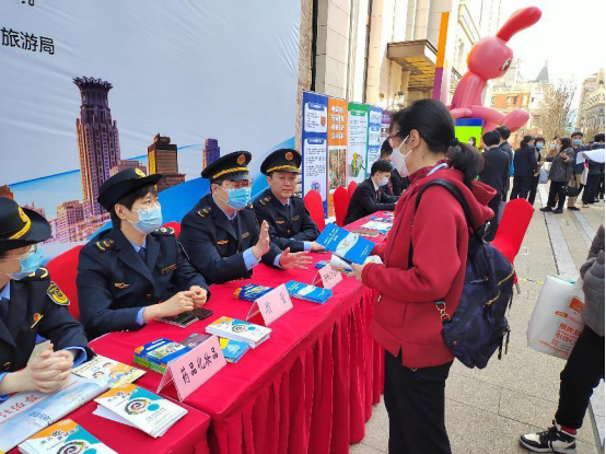 在区内主要商业街、各大商市场、商务楼、联络点,张贴科学消费维权宣传海报,电子显示屏滚动播放维权公益视频、广告等,营造消费维权浓厚氛围,并深入社区、商超、园区、学校、小商品市场等地,开展以“提振消费信心”为主题的宣传活动,通过设置咨询台、宣传展板、发放宣传资料、提供食品快检服务等方式,普及消费维权知识,引导市民理性消费、依法维权。
