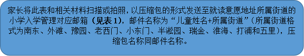 邮件名称为“儿童姓名+所属街道”(所属街道格式为南东、外滩、豫园、老西门、小东门、半淞园、瑞金、淮海、打浦和五里),压缩包名称同邮件名称