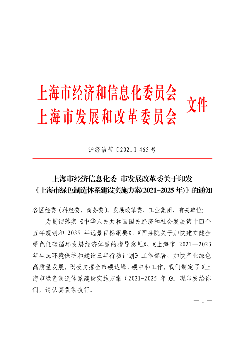 附件:上海市绿色制造体系建设实施方案(2021-2025年)