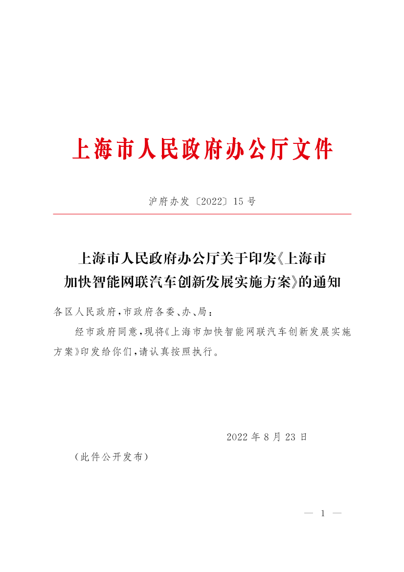 上海市人民政府办公厅关于印发《上海市加快智能网联汽车创新发展实施方案》的通知