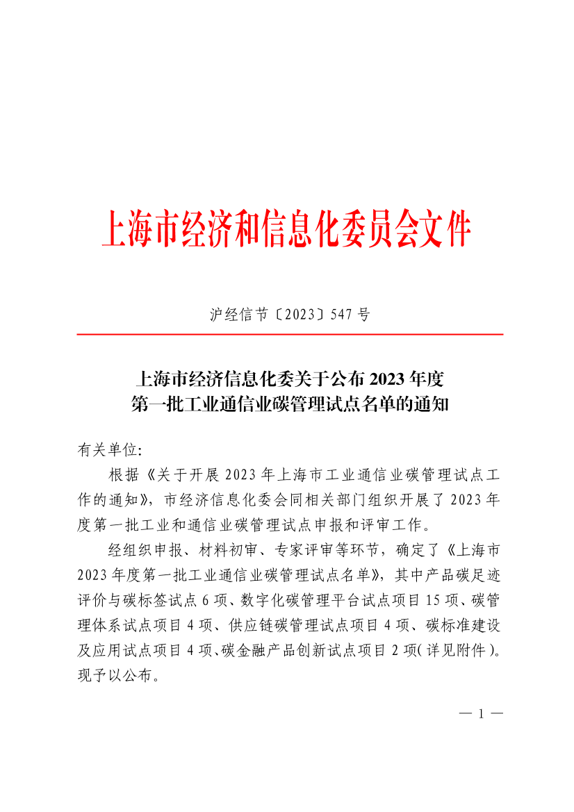 根据《关于开展2023年上海市工业通信业碳管理试点工作的通知》,市经济信息化委会同相关部门组织开展了2023年度第一批工业和通信业碳管理试点申报和评审工作。