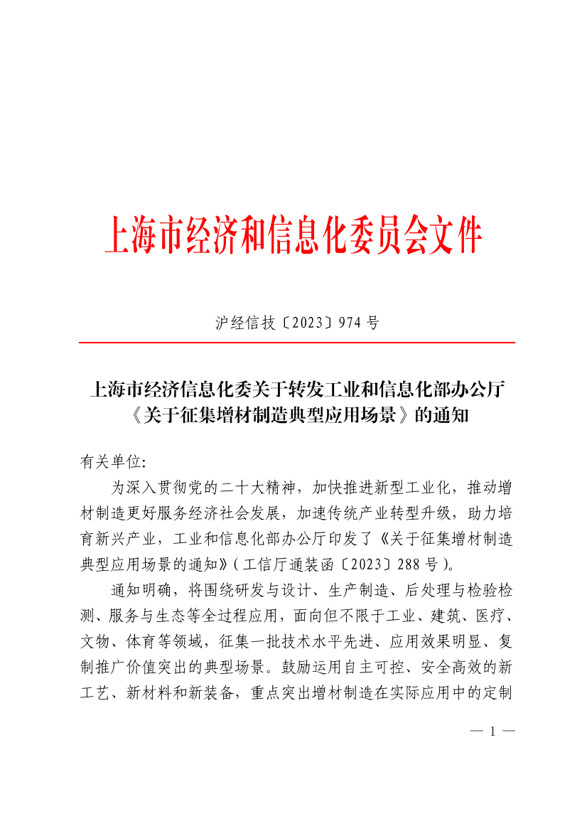 附件:工业和信息化部办公厅关于征集增材制造典型应用场景的通知