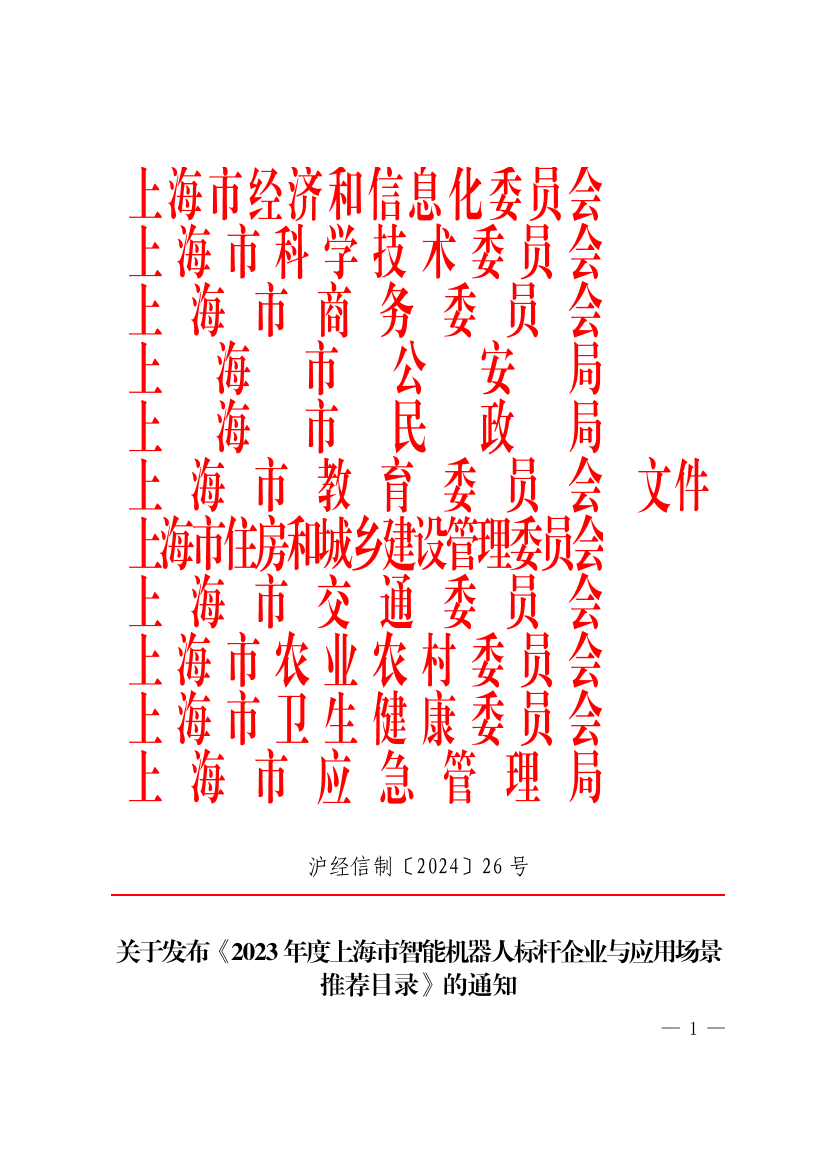 根据国家工业和信息化部等十七部委《关于印发“机器人+”应用行动实施方案的通知》,结合《上海市促进智能机器人产业高质量创新发展行动方案(2023-2025年)》等文件精神,为强化智能机器人终端带动、赋能百业的应用优势,按照《关于征集2023年度上海市智能机器人标杆企业与应用场景推荐目录的通知》要求,经广泛征集、各区推荐、评审择优、入围公示,形成《2023年度上海市智能机器人标杆企业与应用场景推荐目录》入选名单(详见附件),现予以发布。