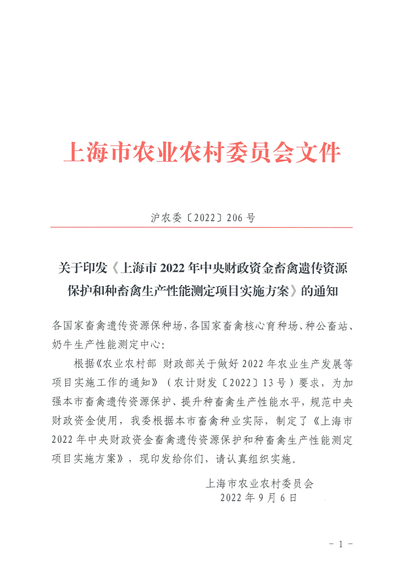 上海市2022年中央财政资金畜禽遗传资源保护和种畜禽生产性能测定项目实施方案