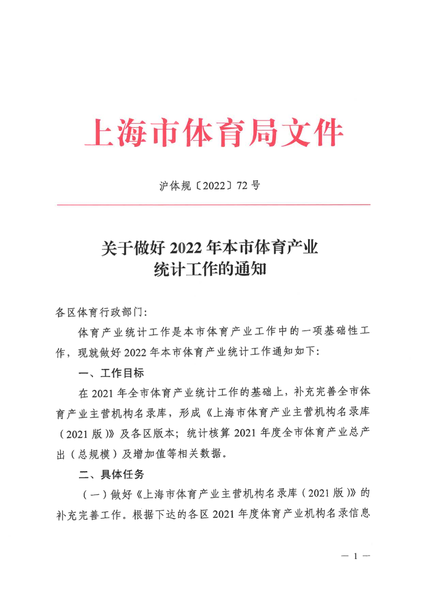 关于做好2022年本市体育产业统计工作的通知