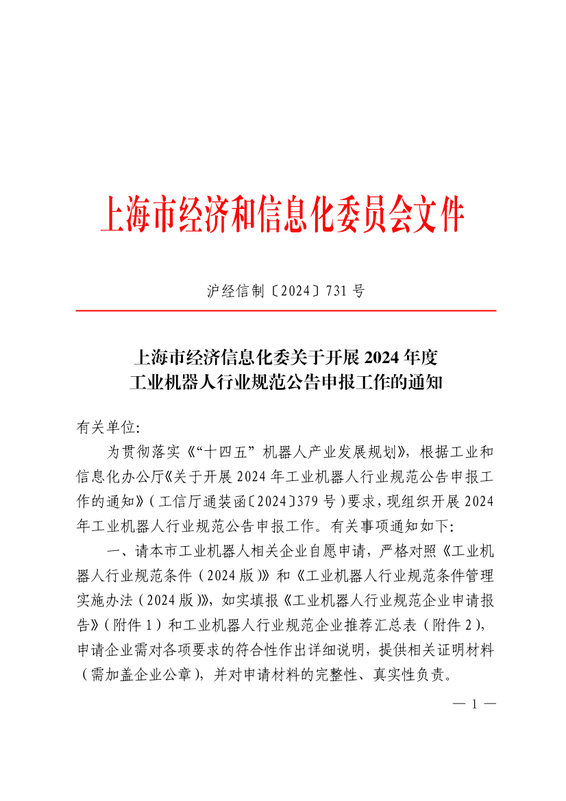 为贯彻落实《“十四五”机器人产业发展规划》,根据工业和信息化办公厅《关于开展2024年工业机器人行业规范公告申报工作的通知》(工信厅通装函〔2024〕379号)要求,现组织开展2024年工业机器人行业规范公告申报工作。有关事项通知如下: