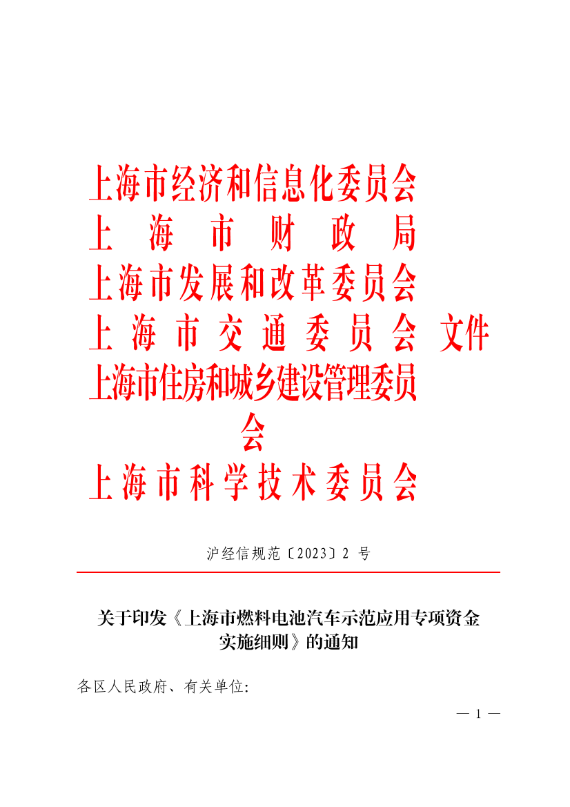 为进一步鼓励燃料电池汽车产业链企业开展技术创新和示范应用,规范和加强上海市燃料电池汽车示范应用专项资金的使用和管理,经市政府同意,现将《上海市燃料电池汽车示范应用专项资金实施细则》印发给你们,请按照执行。