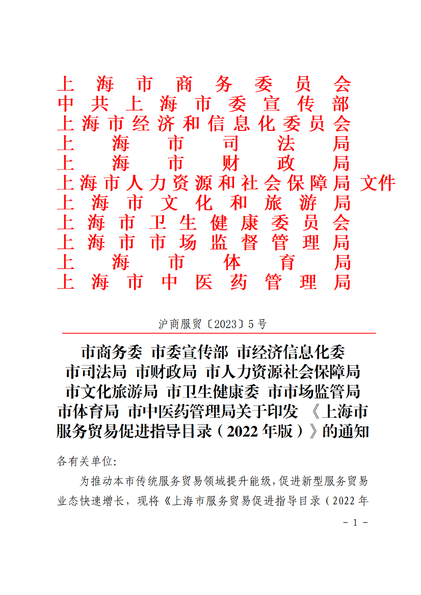 为推动本市传统服务贸易领域提升能级,促进新型服务贸易业态快速增长,现将《上海市服务贸易促进指导目录(2022年版)》印发给你们,请遵照执行。