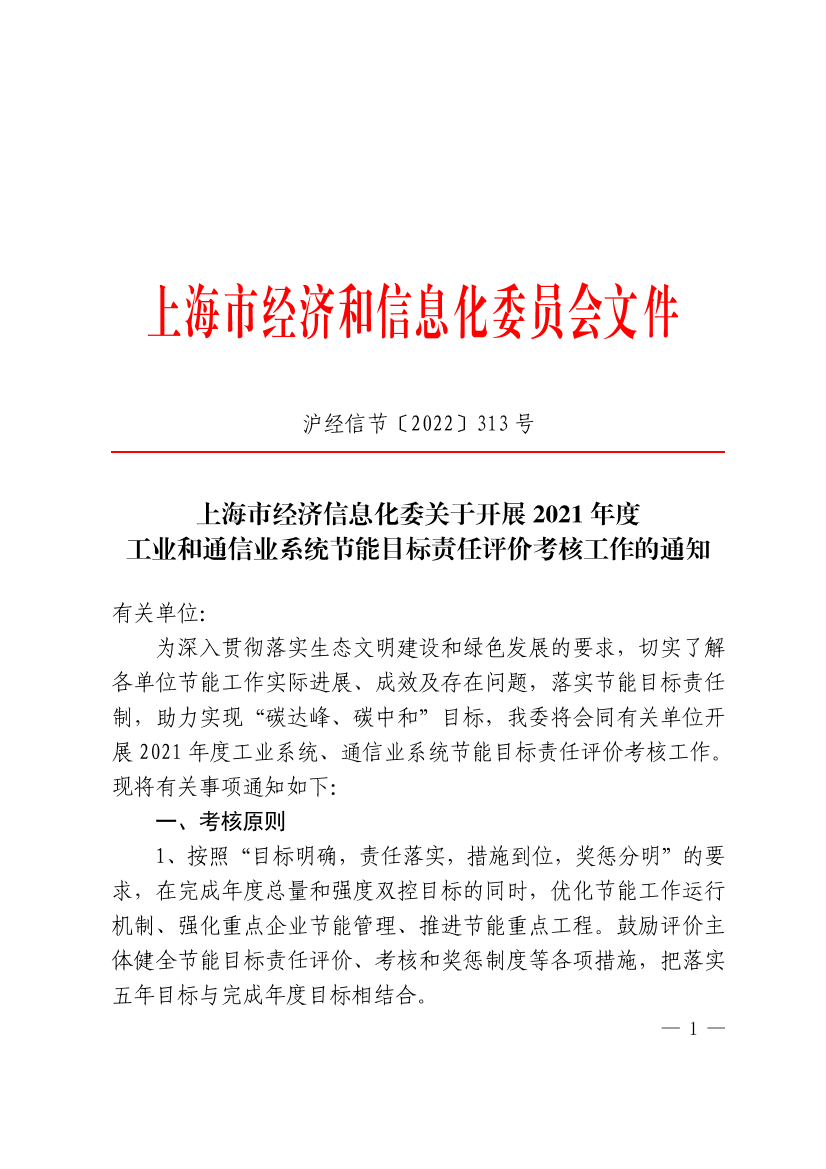 为深入贯彻落实生态文明建设和绿色发展的要求,切实了解各单位节能工作实际进展、成效及存在问题,落实节能目标责任制,助力实现“碳达峰、碳中和”目标,我委将会同有关单位开展2021年度工业系统、通信业系统节能目标责任评价考核工作。现将有关事项通知如下: