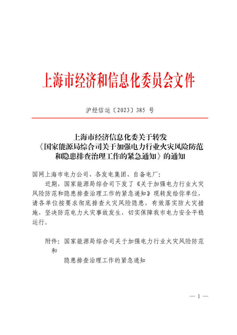 附件:国家能源局综合司关于加强电力行业火灾风险防范和隐患排查治理工作的紧急通知