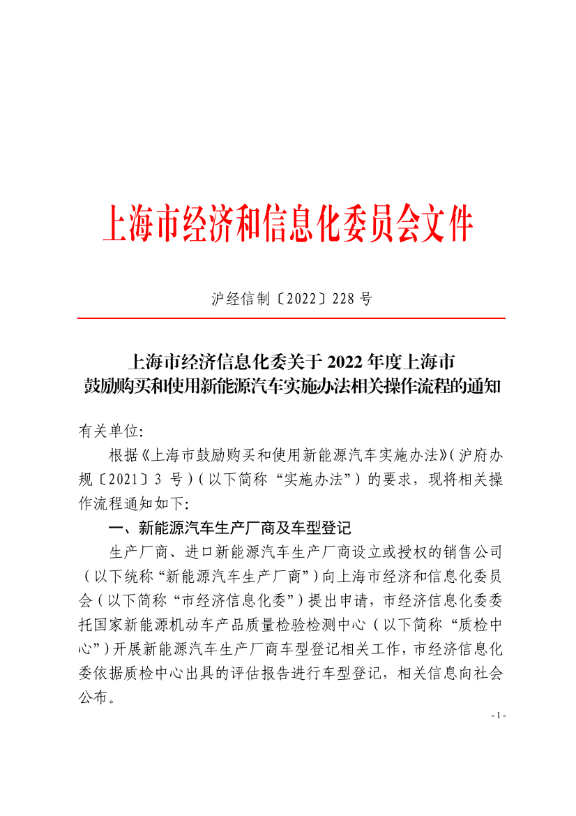 根据《上海市鼓励购买和使用新能源汽车实施办法》(沪府办规〔2021〕3号)(以下简称“实施办法”)的要求,现将相关操作流程通知如下: