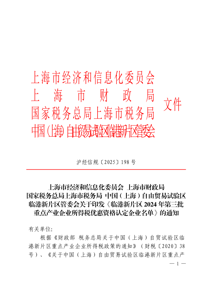 临港新片区2024年第三批重点产业企业所得税优惠资格认定企业名单
