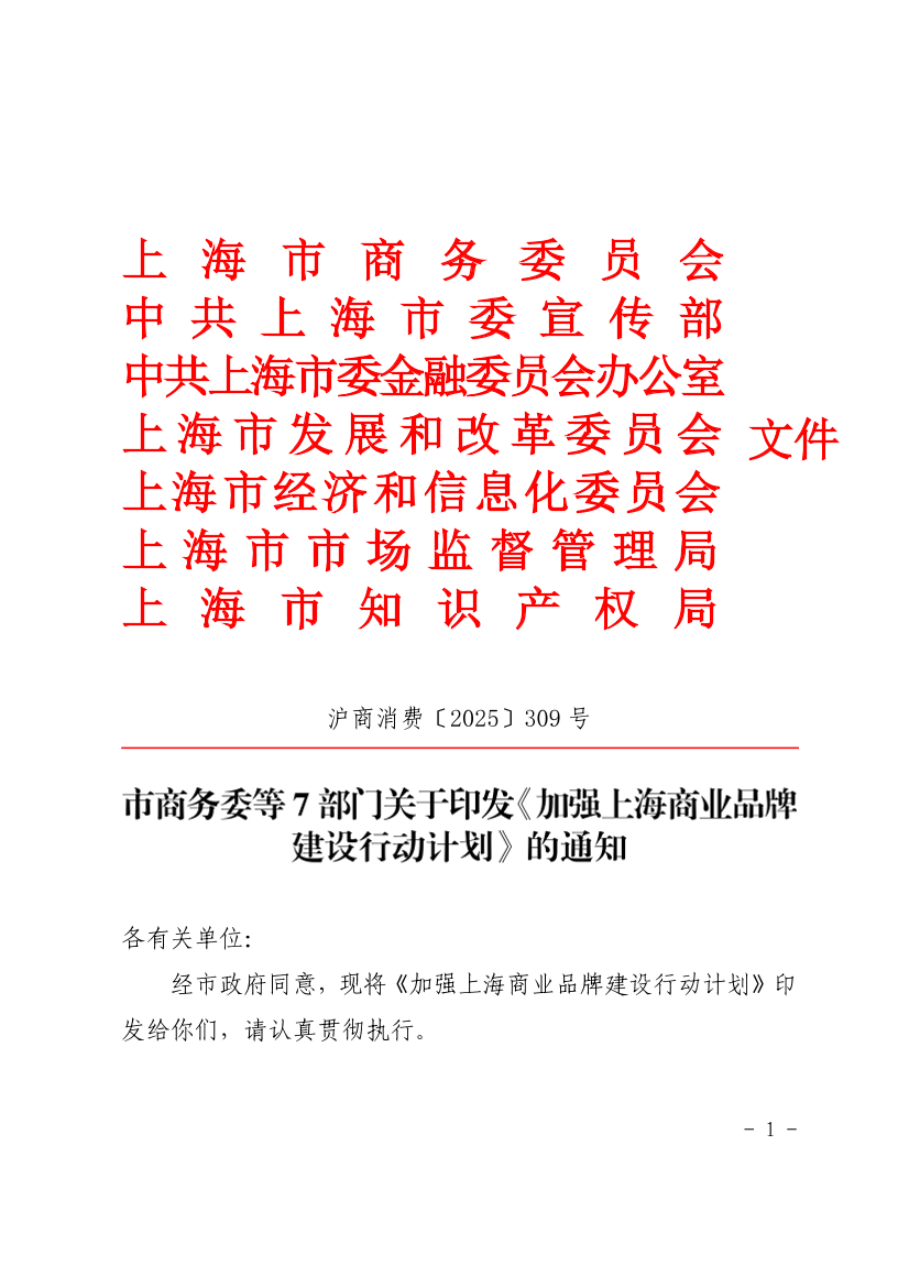 经市政府同意,现将《加强上海商业品牌建设行动计划》印发给你们,请认真贯彻执行。