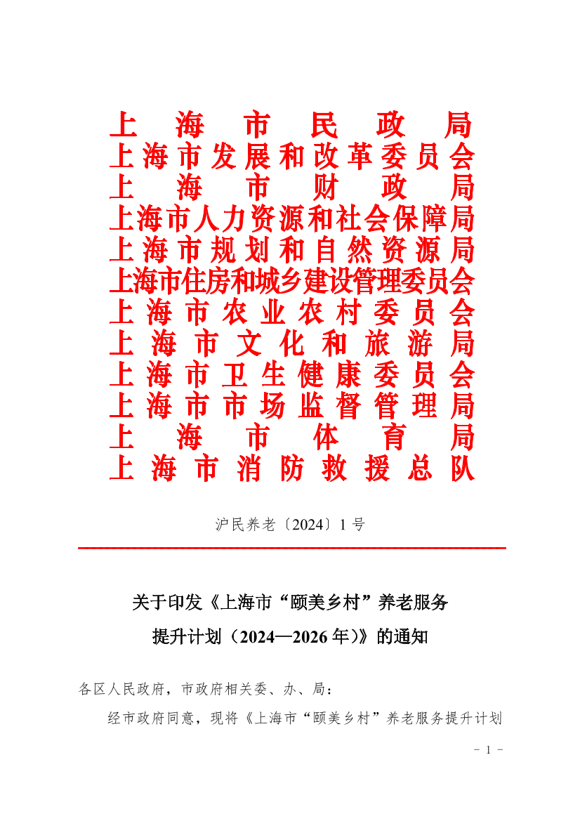 经市政府同意,现将《上海市“颐美乡村”养老服务提升计划(2024—2026年)》印发给你们,请按照执行。