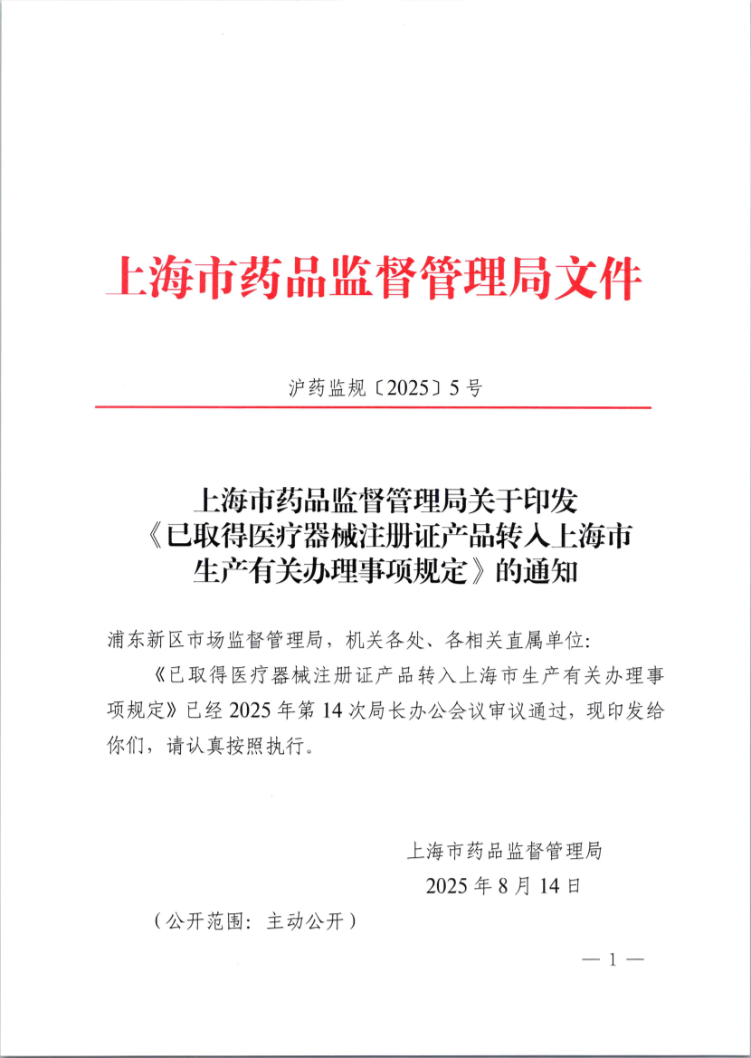 《已取得医疗器械注册证产品转入上海市生产有关办理事项规定》已经2025年第14次局长办公会议审议通过,现印发给你们,请认真按照执行。