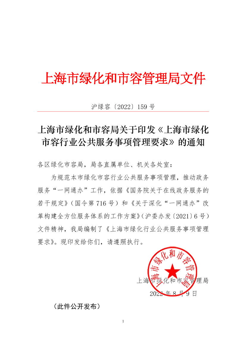 上海市绿化市容行业公共服务事项管理要求