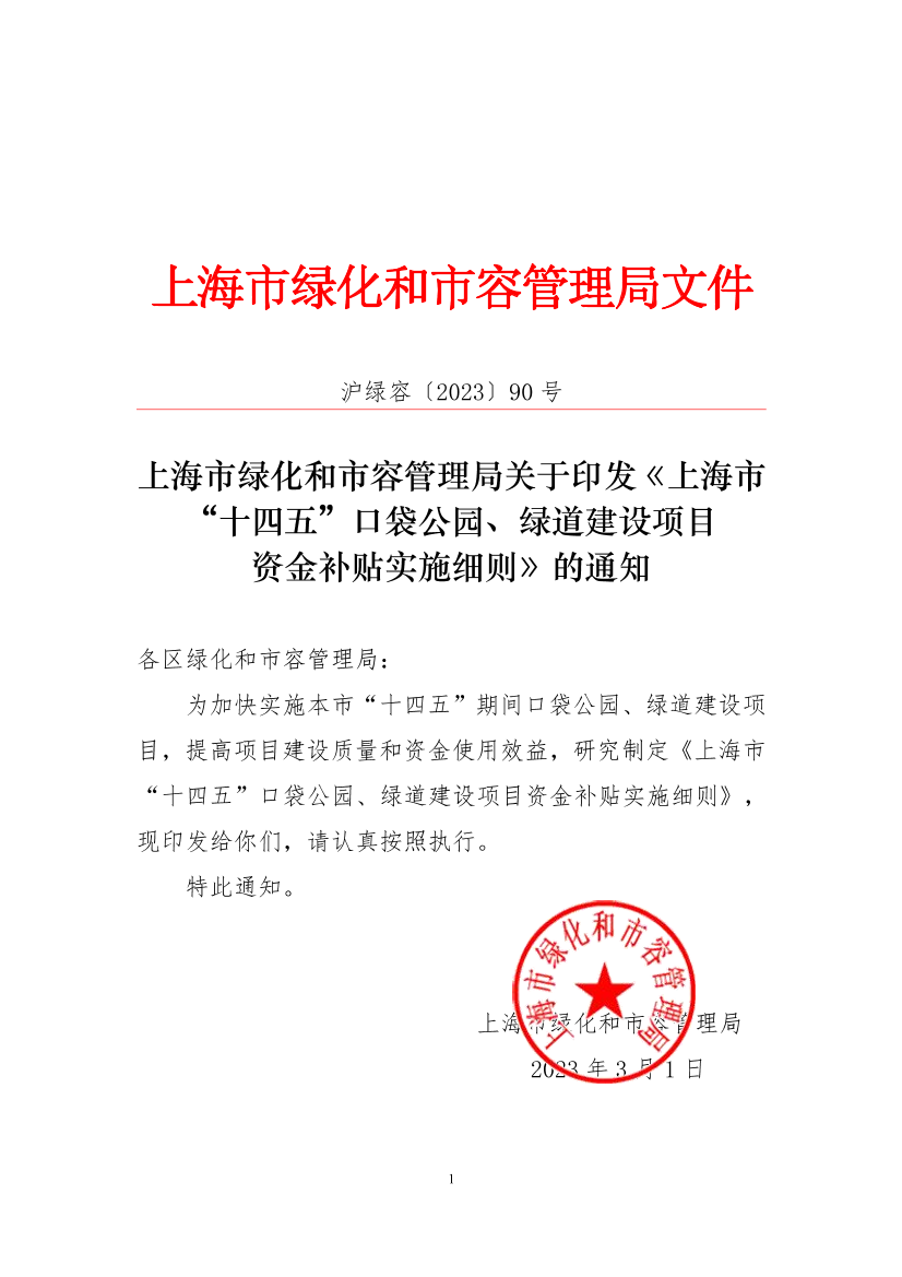 为加快实施本市“十四五”期间口袋公园、绿道建设项目,提高项目建设质量和资金使用效益,研究制定《上海市“十四五”口袋公园、绿道建设项目资金补贴实施细则》,现印发给你们,请认真按照执行。