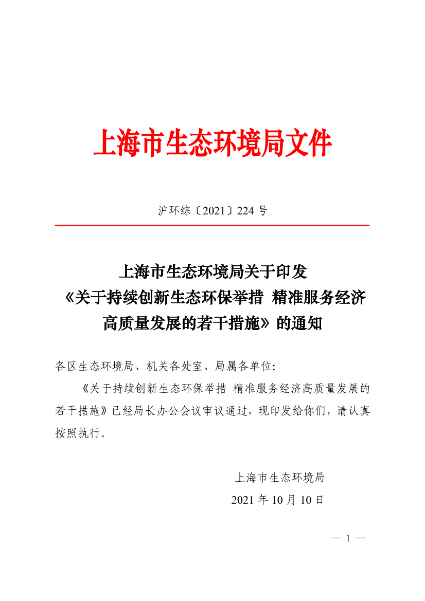 关于持续创新生态环保举措 精准服务经济高质量发展的若干措施