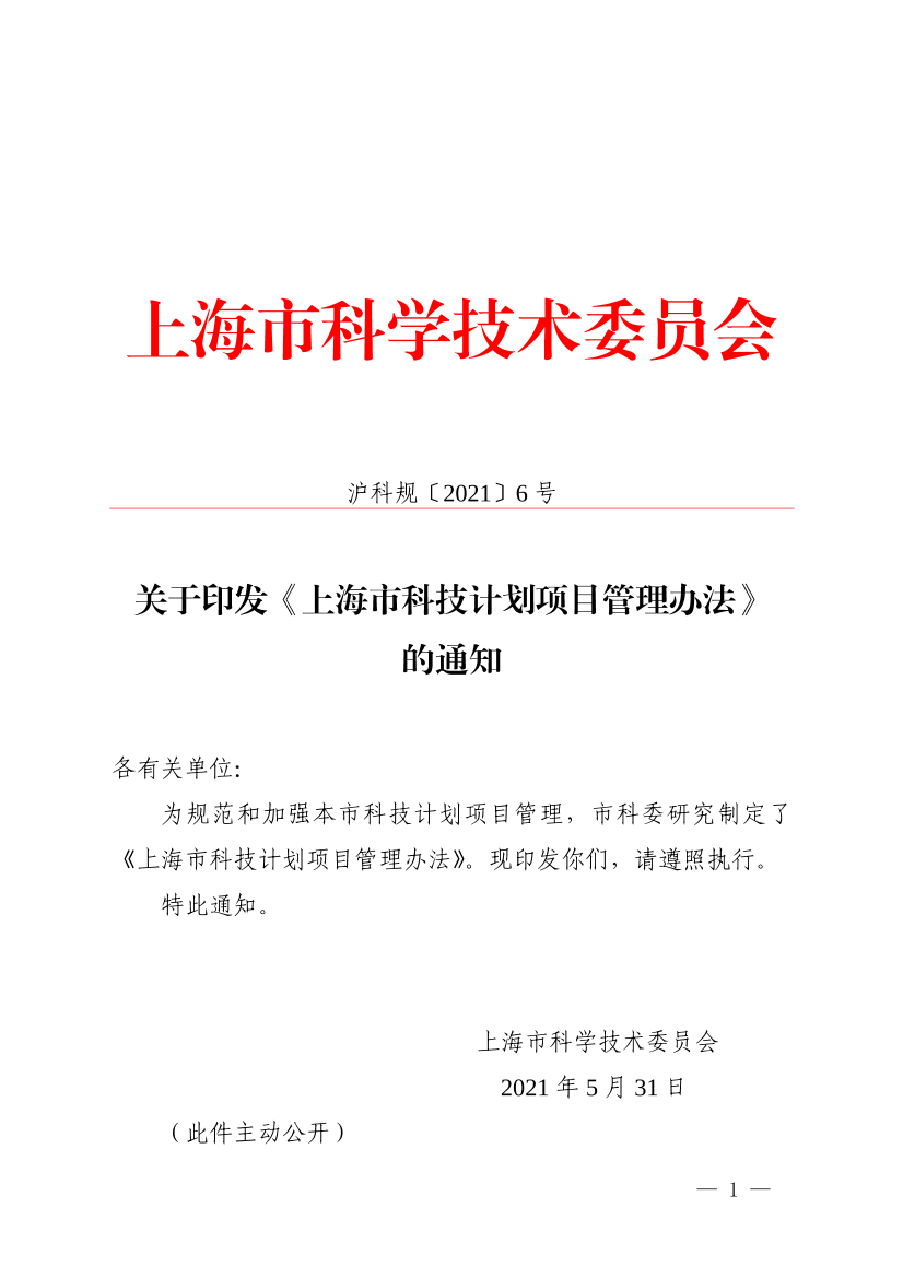 为规范和加强本市科技计划项目管理,市科委研究制定了《上海市科技计划项目管理办法》。现印发你们,请遵照执行。