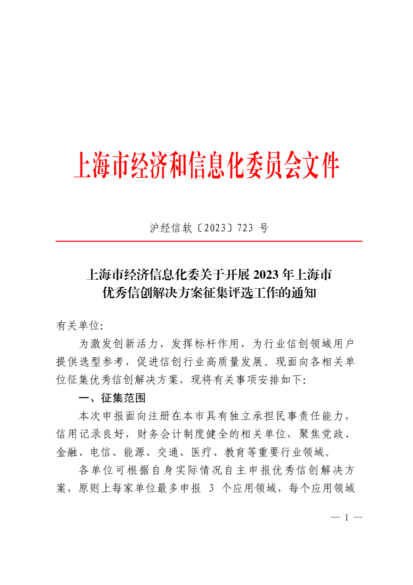 各单位可根据自身实际情况自主申报优秀信创解决方案,原则上每家单位最多申报3个应用领域,每个应用领域最多申报1项解决方案,每项解决方案需单独填报《上海市2023年优秀信创解决方案申报书》(见附件)。
