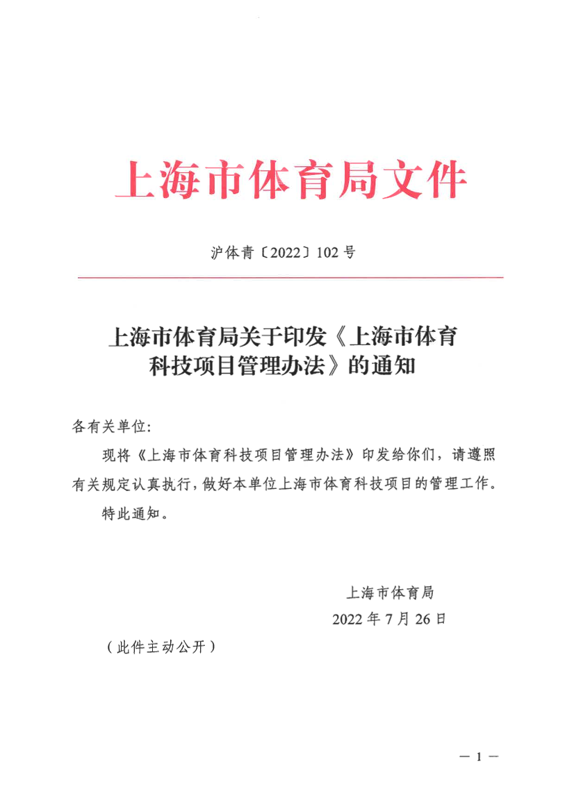 现将《上海市体育科技项目管理办法》印发给你们,请遵照有关规定认真执行,做好本单位上海市体育科技项目的管理工作。